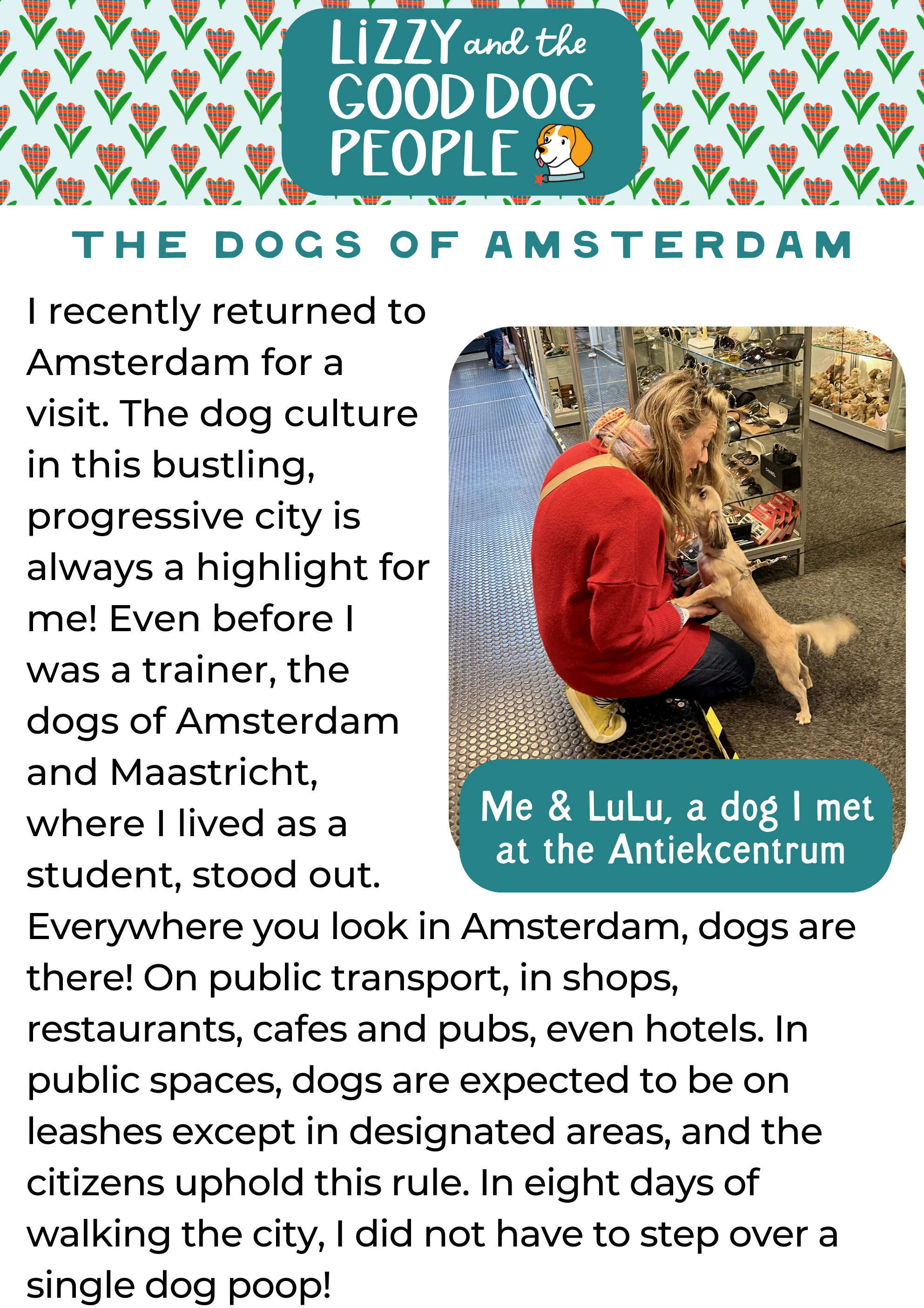 The Dogs of Amsterdam travelculturetraining methods Nov 19 Written By Lizzy Flanagan DogsDog TrainerTravelTraining MethodsDog TrainingAmsterdamCulture Lizzy Flanagan http://www.thegooddogpeople.com